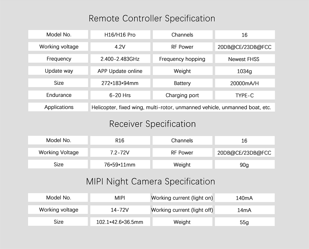 helicopter, fixed wing, quadcopter, car and ship Remote control parameters