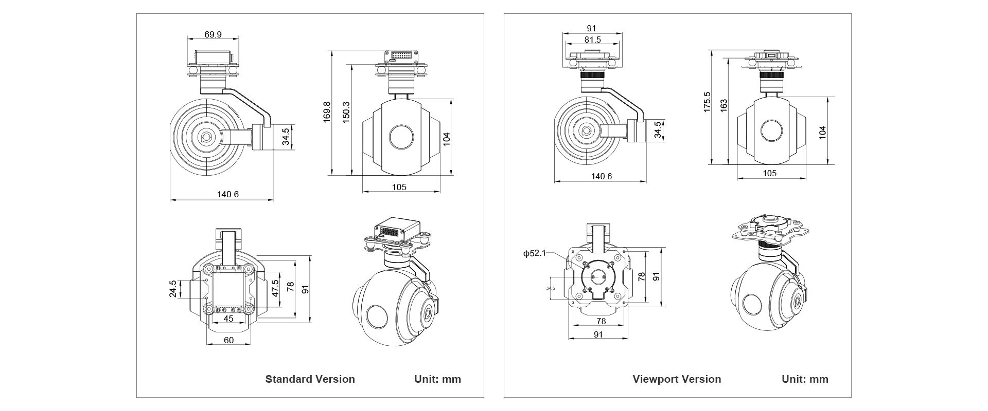 Connected to GPS module it has geo tagging funcion. Combining with high-precise stabilisation system and automatic thermal compensation algorithm, the gimbal can fulfill high level stablization requirements without thermal drifting.