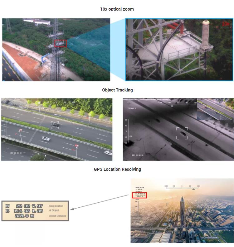 WK10TIRM is a high-precision professional 3-axis gimbal which features high stability, small size, light weight and low power consumption. The 3-axis gimbal based on FOC motor control technology, adopts high-precision encoder in each motor. It can meet many powerful functions, such as: photos or videos with 10 times optical zoom, object tracking, laser rangefinder, thermal imager and so on.